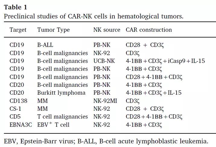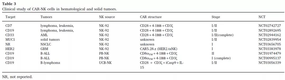 在血液系統(tǒng)腫瘤中,目前研究較多的為CD19-CAR-NK細(xì)胞和CD33-CAR-NK細(xì)胞。