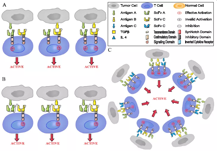 盡管多項研究數(shù)據(jù)顯示,多靶向CAR-T治療多種惡性腫瘤的療效顯示積極,成為預防抗原逃避的有效手段,但這種類型的CAR-T細胞可被多個靶抗原識別并高強度激活T細胞,容易引起細胞因子風暴,并對低表達靶抗原的正常細胞過度殺傷。